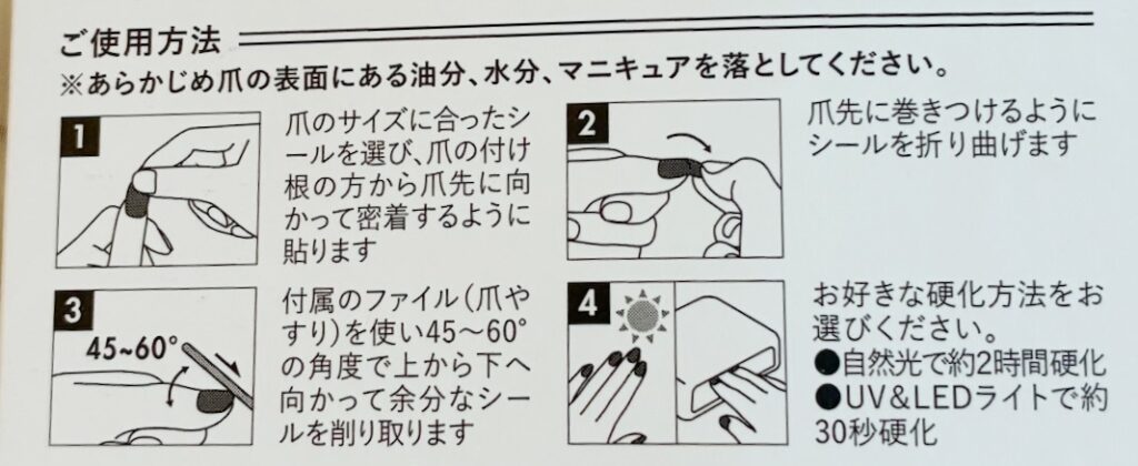 マニキュアだと完全に乾くまで何もできないことを考えると、ジェルネイルシールは硬化したらすぐに手が使えるのがとても良かったです。