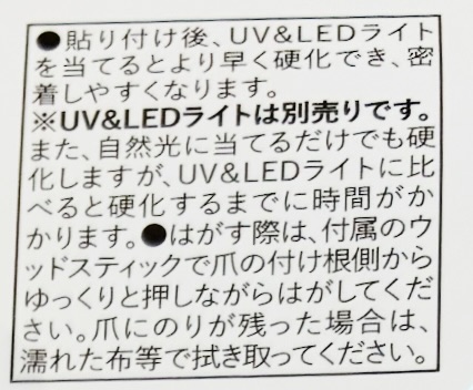 シールを貼った後は、硬化させて定着させるようなのでUV/LEDライトがあった方が尚よいです。