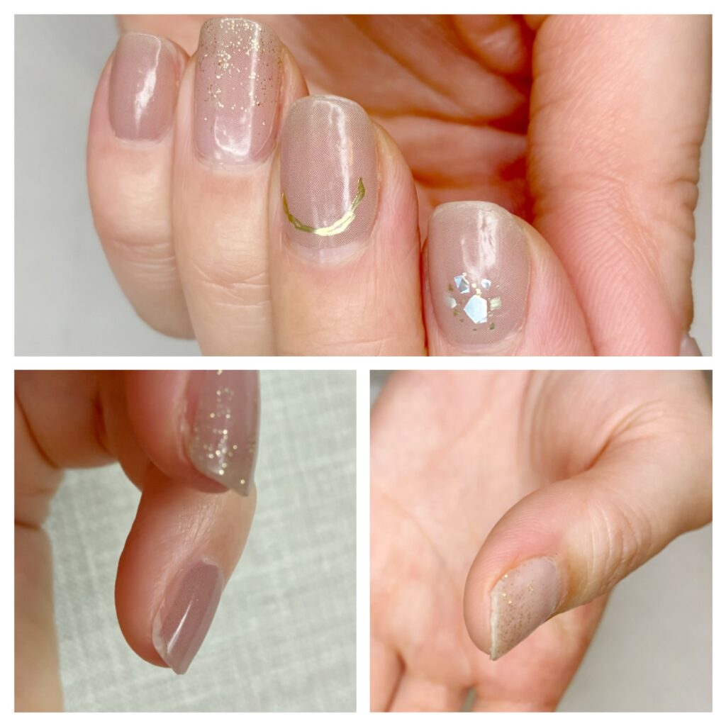 このネイルシールをしてからは毎日そこそこの洗い物をしたり、お風呂は浸からずシャワーで水に触れる生活でした。やはり爪がふやけると持ちが悪いかと思います。