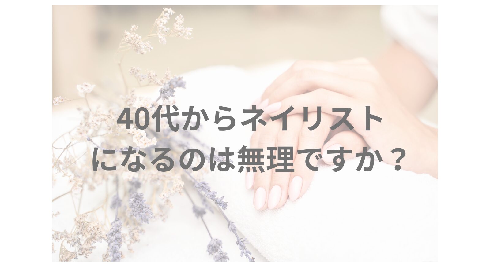 私はたくさんのネイリストの方と出会ってきましたので、実話をもとに40代からネイリストになれるのか、また、どんな苦労があるのかなどをまとめました。
